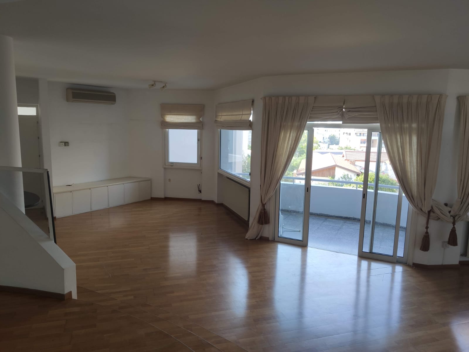 ✅ Large living room and dining area with parquet flooring